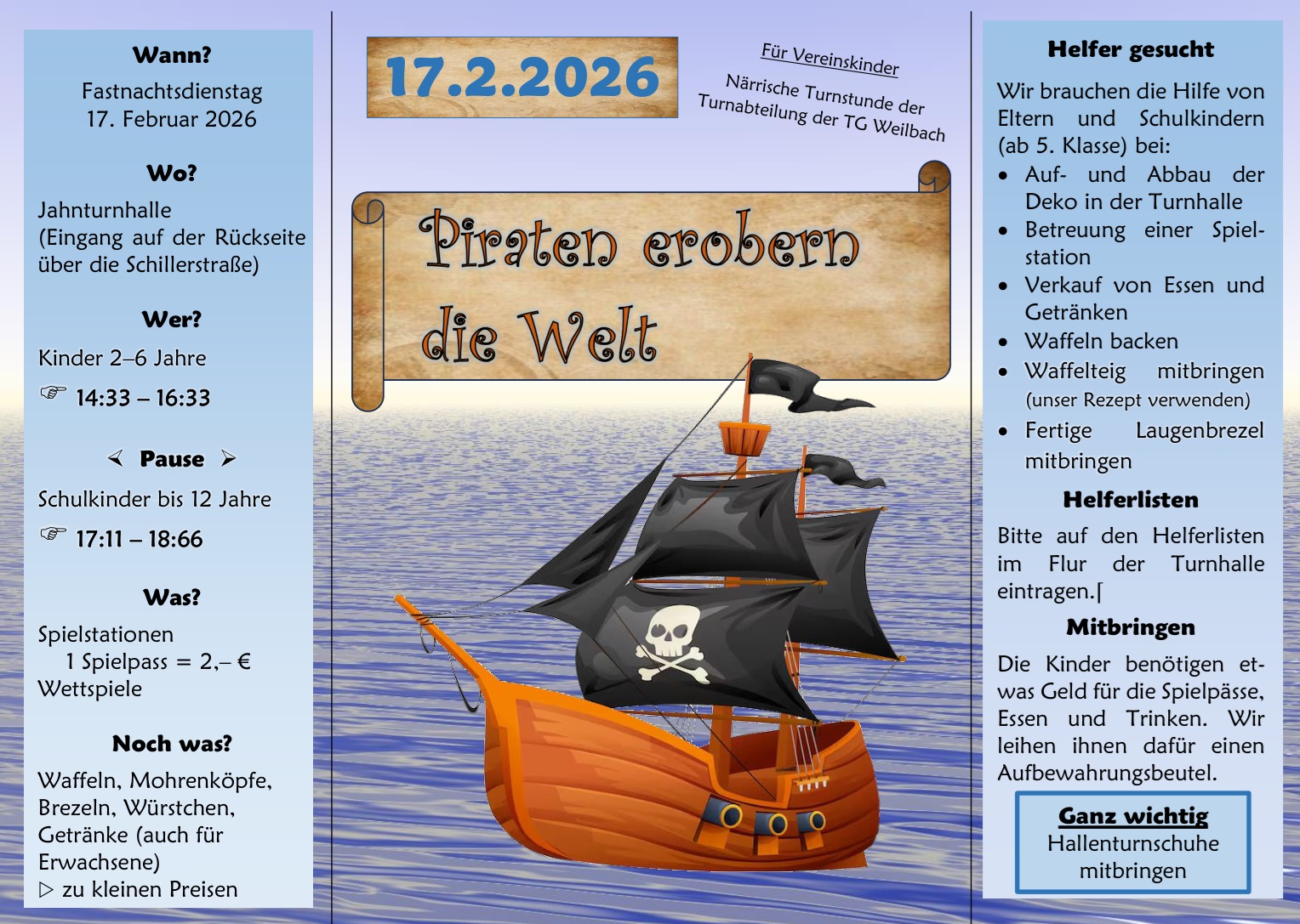 Die Weilbachhalle fällt vom 23.1.-10.2.2026 wegen Fastnacht komplett aus.